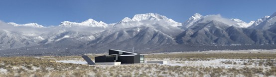 David Jay Weiner, Architects, P.C. was founded with a focus on design and planning with the intention of providing quality architectural services. Their project in the town of Crestone, Colorado is one of examples of their high quality works. With population of 800 people, Crestone become an enclave of spiritual retreats in a past few decades. The house designed by David Jay Weiner is inspired by traditional Japanese architecture but with touch of modern style. This 1600 square feet residence contains three major interior spaces: a great room, which consist of living/dining/kitchen areas, a meditation room and a master bedroom. The exterior envelope consist of black corrugated-metal siding folds. Because of 330 sun days a year house has a photovoltaic panel to collect solar energy. The water is supplied by a well that access an aquifer.